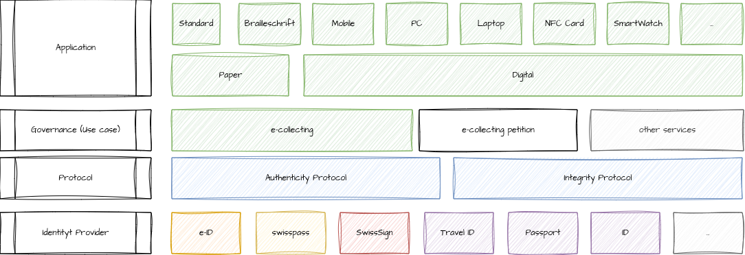 - The Federal Chancellery can perform a second level control — through digital proofs, receipts, open APIs to secured registeries. Final decision on the acceptance of intitive or referandum to be backed by an auditable processes respecting the federal structure of Swiss democratic institutions. The problem we did not address during the hackathon is the essential ceremonial of depositing the boxes of signature form in Bern by the initative committee. Transfering a set of cryptographic key is less visual than a pile of boxes.